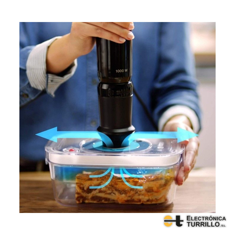 Potente batidora de mano con opción de envasar al vacío. Disfruta de tus alimentos frescos todos los días.
