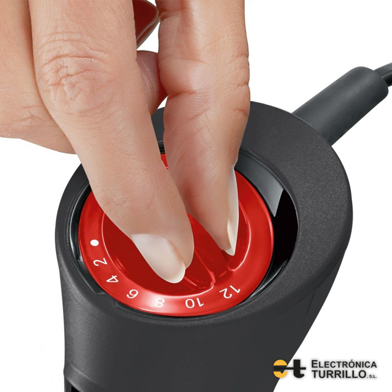 Selector de velocidades hasta 12+1 niveles diferentes. Aplica la velocidad perfecta para cada receta. Además, tiene un nivel extra Turbo alcanzando la máxima potencia pulsando tan solo un botón.