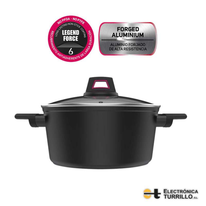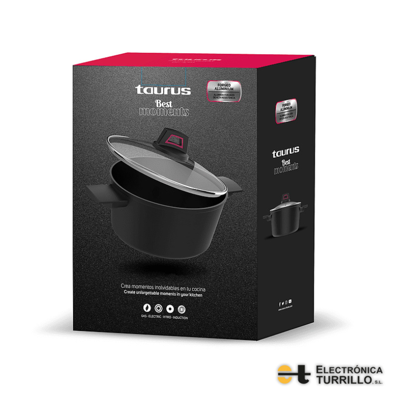 Cazuela - Taurus KCK4024 Best Moments, Aluminio forjado, 24 cm, Todo tipo de fuegos, Negro
