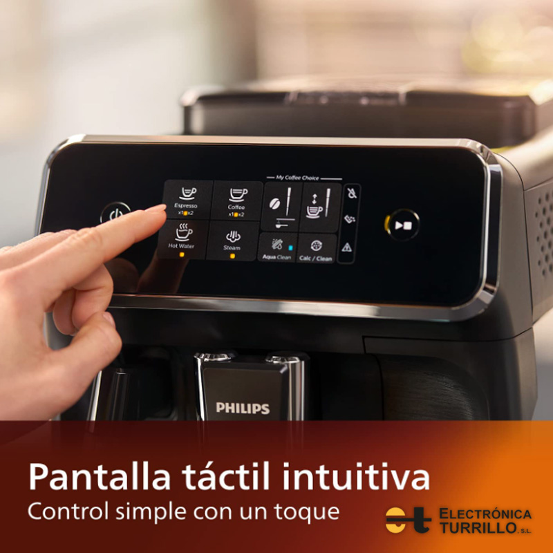 Control simplificado: Esta cafetera con espumador de leche incluye una pantalla táctil intuitiva que permite seleccionar con facilidad el café perfecto según tu ánimo.