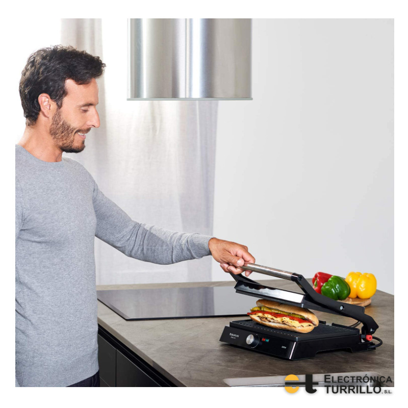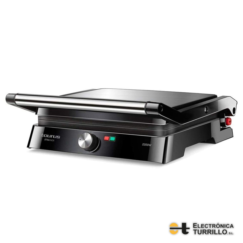 Plancha - grill Taurus, 2 en 1 Grill + plancha de asar con apertura 180º y regulador de temperatura. Placas 29x23 cm, placa superior basculante, 2200 w, antiadherente.