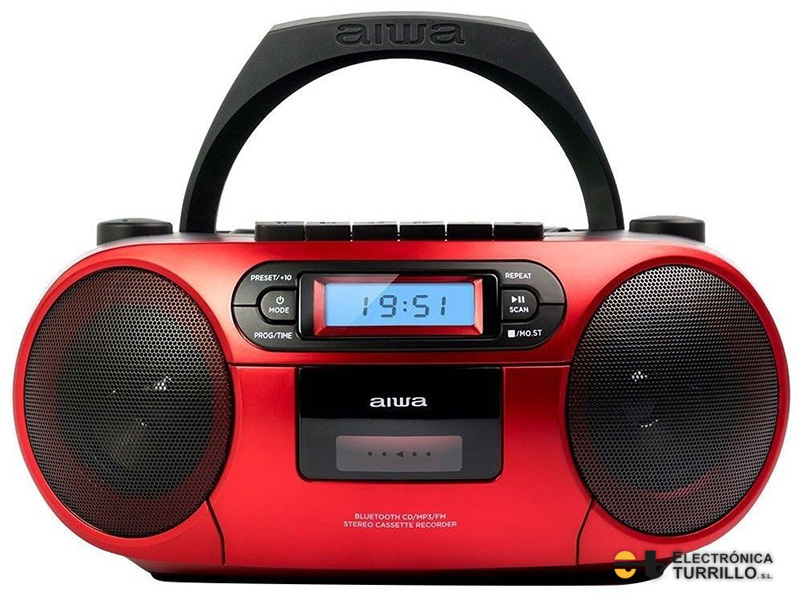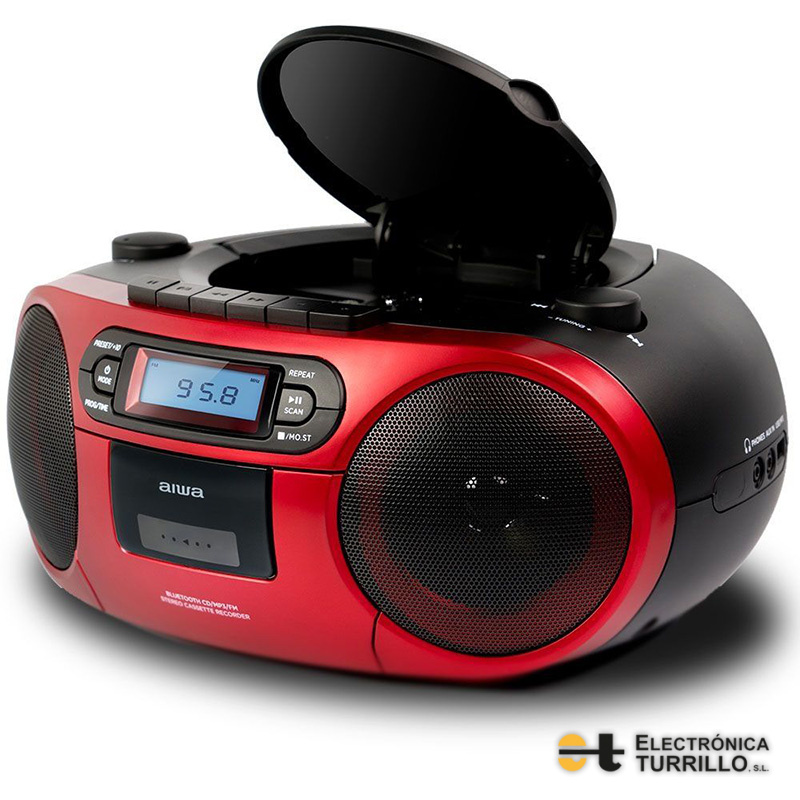 Radio cassette con CD Aiwa BBTC-550RD, Reproduce CD/CDR/MP3, Radio FM PLL, Negro/Rojo