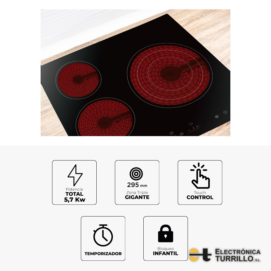 Vitrocerámica 60 cm 3 zonas de cocinado